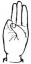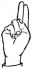На ћирилици написано ВАЛЕНТИНА ОКОШАНОВИЋ састоји се из 19 слова [?]. Исписано ћириличном једноручном азбуком за глувонеме: